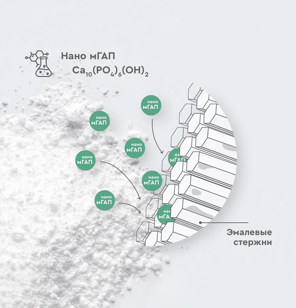 Серии «PRO» — это инновационный продукт на основе гидроксиапатита, минерала, составляющего 96% зубной эмали. Мы используем наногидроксиапатит с размером частиц до 40 нанометров, которые эффективно встраиваются в поверхность зубов, способствуя их реминерализации и укреплению.